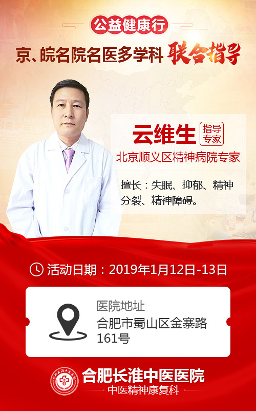 合肥长淮中医医院中医精神科是安徽省重点精神疾病专科医院,专业诊治精神疑难,已有数万患者从这里,希望本周的指导活动能够为更多的患者带去的希望。