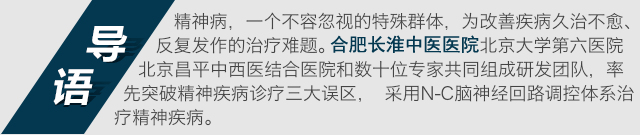 “N-C脑神经回路调控体系”获世界卫生组织专业认证, 并在《全国精神卫生防治保障工程》作为安徽定点定点医院,采用中西医结合,标本兼治,快速诊疗。使失眠、抑郁、精神分裂、精神障碍、焦虑症、强迫症等各类精神疾病患者摆脱痛苦,安全可靠,方便快捷,已成功治疗超过数万例患者,看的见的效果 ,一个疗程基本恢复,可从根源上治疗疾病,让患者从疾病的困扰中走出来。